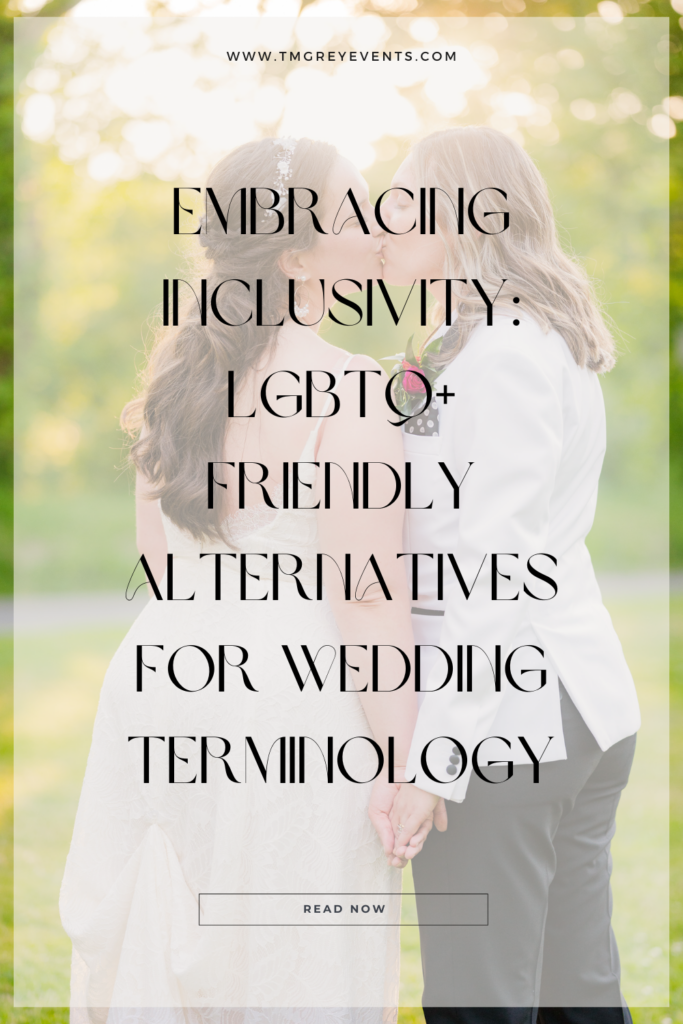 TM Grey Events is dedicated to creating a wedding experience that celebrates love in all its beautiful forms. As inclusivity becomes default for modern weddings, language plays a crucial role in ensuring everyone feels welcome and valued. By embracing inclusive terminology, we can honor each individual’s identity and create a truly memorable celebration. Below, we explore some creative alternatives to traditional wedding terms that are more inclusive for the LGBTQ+ community.